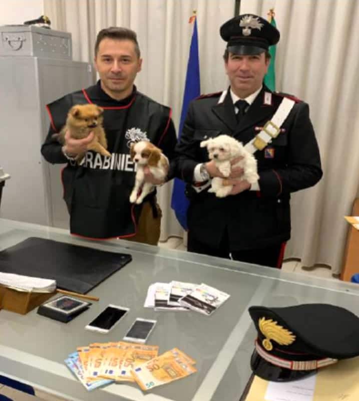 Per porre fine all’illecito i carabinieri e l’informatore scientifico hanno finto interesse in un acquisto, riuscendo così non solo ad individuare i due uomini ma anche a recuperare tre cuccioli, rispettivamente una femmina di razza maltese, un maschio di razza cavalier king, una femmina di razza spitz nana, tutti dell’età stimata di 45 giorni. Erano privi di microchip, trasportati in bauliere prive di cibo e acqua e stipate nell’autovettura in uso ai due malviventi.