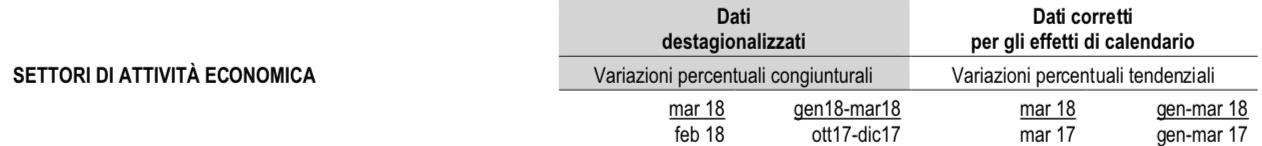 A marzo 2018 si stima che l’indice destagionalizzato della produzione industriale aumenti dell’1,2% rispetto a febbraio. Nella media del trimestre gennaio-marzo 2018 la produzione ha registrato una variazione nulla nei confronti dei tre mesi precedenti.
