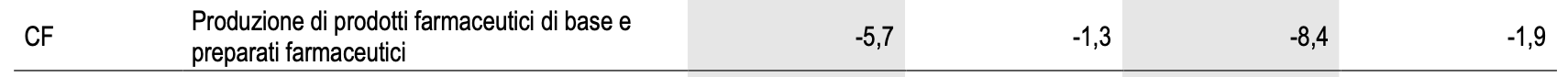 I prodotti farmaceutici di base e preparati farmaceutici anno 24 -1,9% rispetto al 23