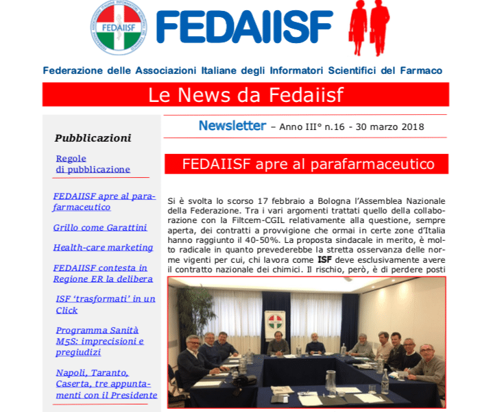 Fedaiisf Federazione delle Associazioni Italiane degli Informatori Scientifici del Farmaco e del Parafarmaco