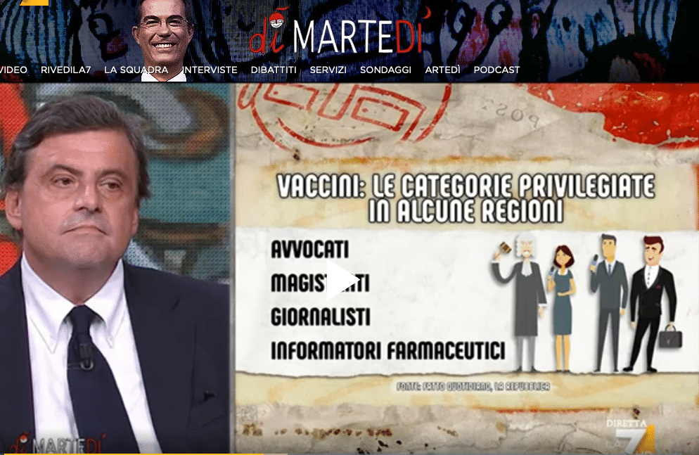 Ho seguito la puntata del vostro programma del 30 marzo u. s. nel corso della quale, il conduttore Giovanni Floris ha mostrato una slide in cui si evidenziavano “le categorie privilegiate in alcune regioni”. Era un elenco di quattro categorie: avvocati, magistrati, giornalisti e informatori farmaceutici. Il conduttore ha commentato la categoria che mi onoro di rappresentare con un frase particolare: “anche gli informatori farmaceutici perché sono del giro”. La domanda sorge spontanea: a quale giro si riferiva?