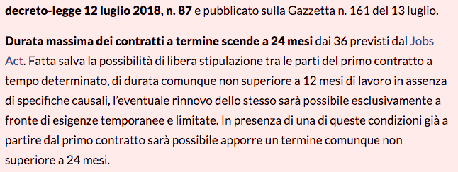 Notizie correlate: DECRETO-LEGGE 12 luglio 2018, n. 87. Disposizioni urgenti per la dignità dei lavoratori e delle imprese.