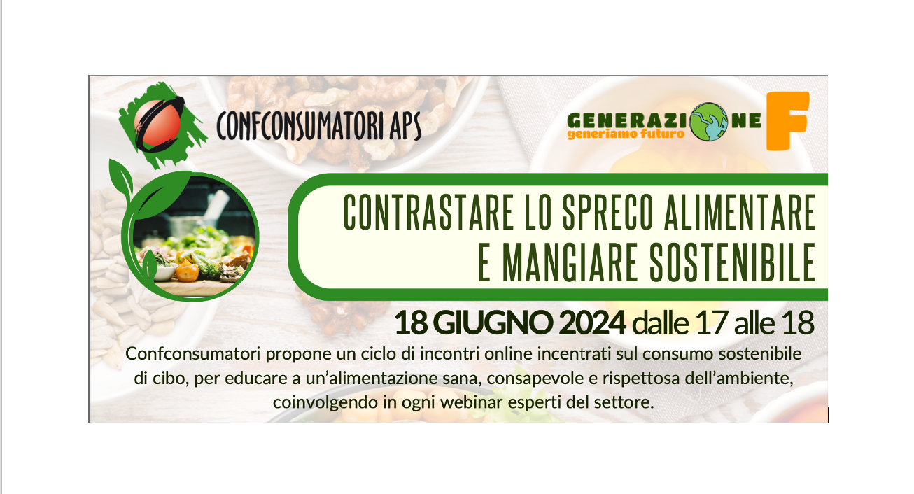 Contrastare lo spreco alimentare e mangiare sostenibile: Confconsumatori organizza un webinar il 18 giugno