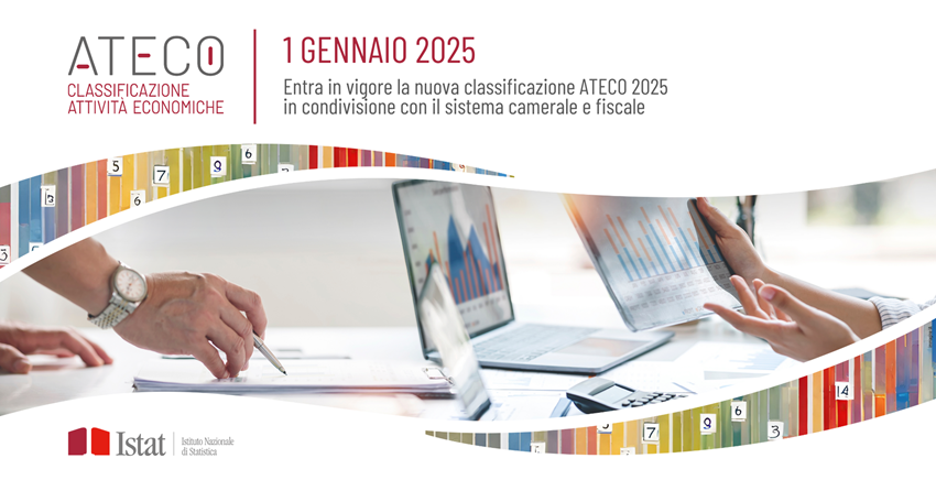 L’Istat ha sviluppato la nuova classificazione ATECO 2025 che entrerà in vigore a partire dal 1° gennaio 2025 e sostituirà l’attuale versione della classificazione ATECO (ATtività ECOnomiche) 2007 – Aggiornamento 2022. La realizzazione dell’ATECO 2025 è il risultato di un’articolata operazione di revisione effettuata in collaborazione con altri enti istituzionali sotto il coordinamento dell’Istat in qualità di responsabile della classificazione delle attività economiche.
