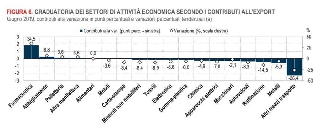 Nel primo semestre 2019 si sono registrati degli importanti contributi positivi alla crescita dell’export farmaceutico italiano; in particolare i mercati trainanti per le vendite italiane di farmaci sono la Svizzera, la Germania e la Francia.