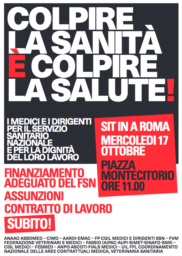 A promuovere la mobilitazione, le organizzazioni sindacali di categoria che saranno in piazza anche il 17 ottobre in un sit davanti a Montecitorio, tra cui l’Anaao e la Fp Cgil. Una seconda giornata di sciopero dovrebbe tenersi anche il 23 novembre, come riporta il sito della Commissione di Garanzia sugli Scioperi. In questo caso a incrociare le braccia saranno solo i medici del sindacato degli anestesisti e rianimatori, Aaeroi-Emac.