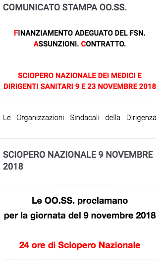 governo, dopo l’interruzione del confronto tecnico al tavolo contrattuale. Alla base delle rivendicazioni dei medici c’è soprattutto il finanziamento del Fondo sanitario nazionale 2019 che preveda le risorse indispensabili per garantire i nuovi Lea ai cittadini e per onorare i contratti di lavoro scaduti da 10 anni. “È spregevole – scrivono – mettere in competizione, su risorse insufficienti, il diritto alla cura dei cittadini e quello a un dignitoso contratto di lavoro per i professionisti che quelle cure devono erogare”.