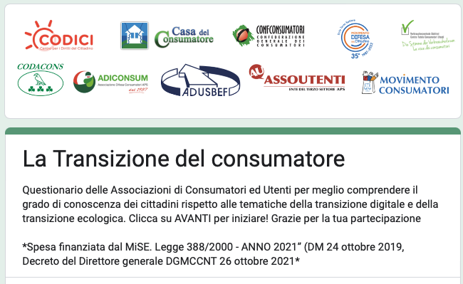 Le Associazioni di consumatori lanciano un questionario per comprendere il grado di conoscenza delle tematiche della transizione digitale ed ecologica.