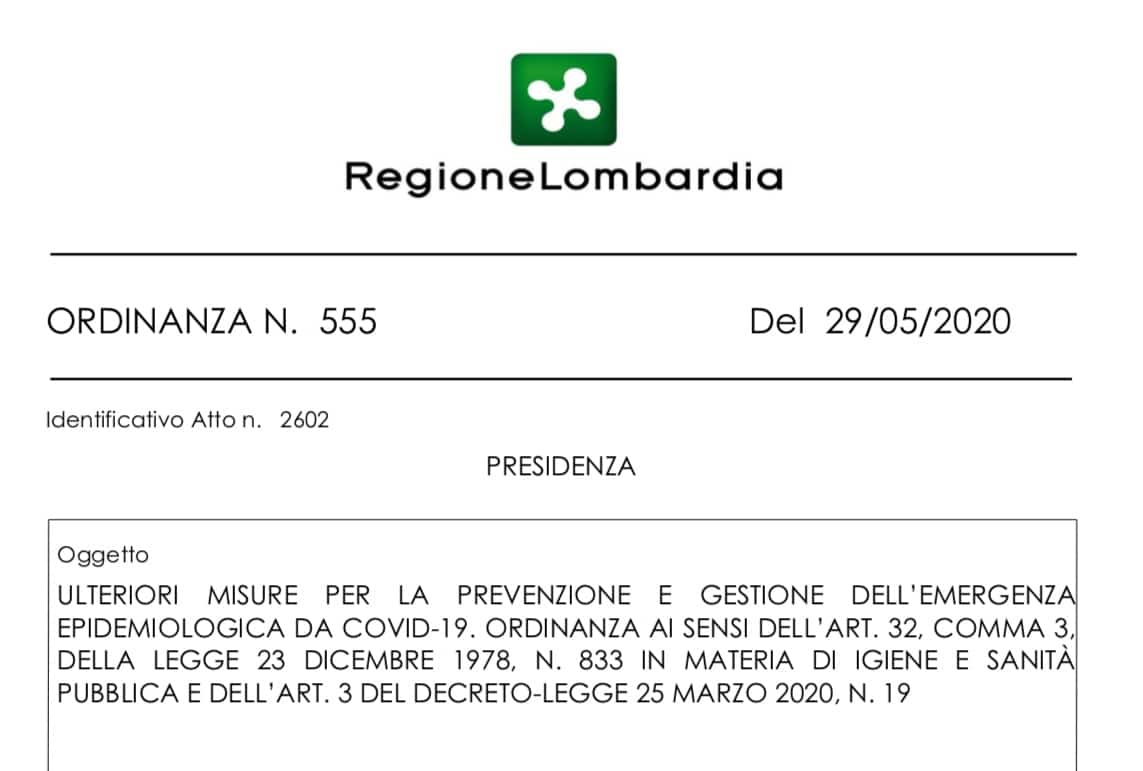 Ordinanza n. 555 del 29/05/2020