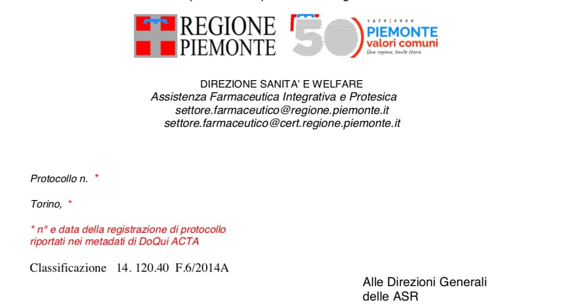 Assistenza Farmaceutica Integrativa e Protesica settore.farmaceutico@regione.piemonte.it
