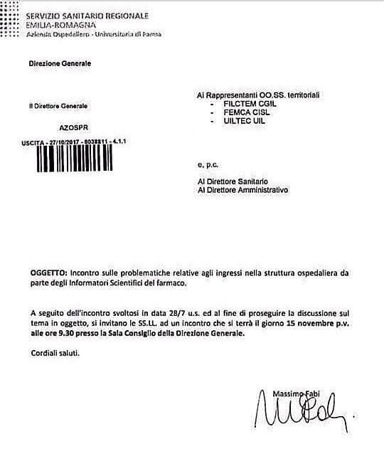 Regolamento ISF. Nuovo incontro Ospedale di Parma con le OO.SS. per il 15 novembre