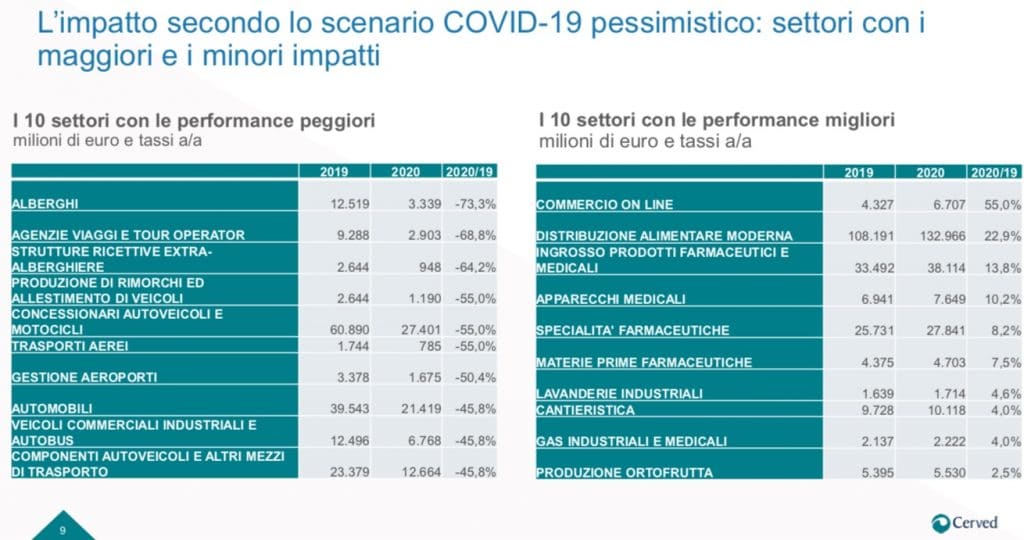 È questo lo scenario che emerge dal nuovo Cerved Industry Forecast, dedicato agli impatti attesi del COVID-19 su oltre 200 settori dell’economia italiana, che include anche una stima degli effetti economici sui sistemi economici regionali.