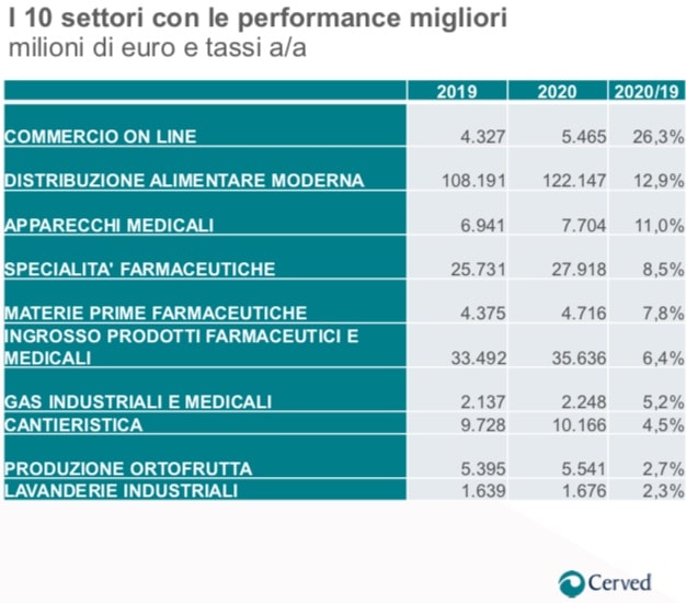In uno scenario così estremo, per alcuni settori anticiclici – come l’e-commerce, la distribuzione alimentare moderna, la farmaceutica e gli apparecchi medicali – le previsioni sono invece anche più positive rispetto allo scenario base. Nel caso del commercio elettronico, i ricavi crescerebbero addirittura del 55%.