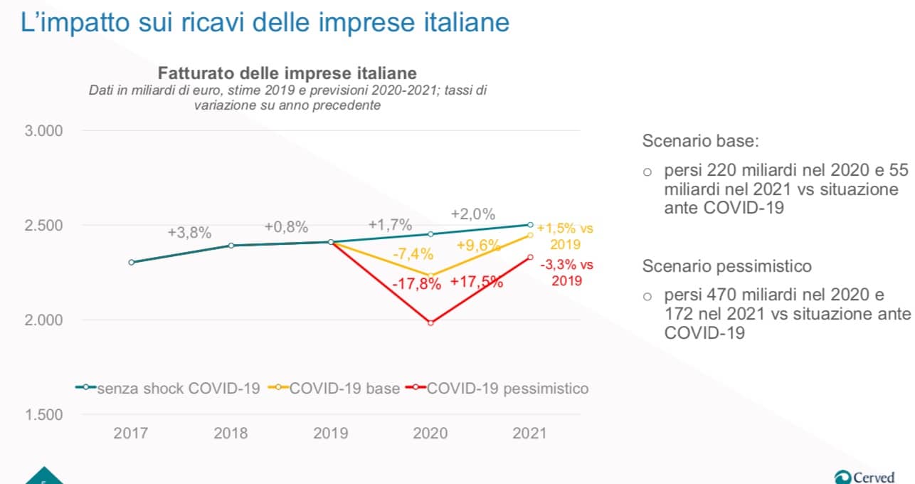Le imprese italiane potrebbero perdere tra i 270 e i 650 miliardi di fatturato nel biennio 2020-21 a causa del