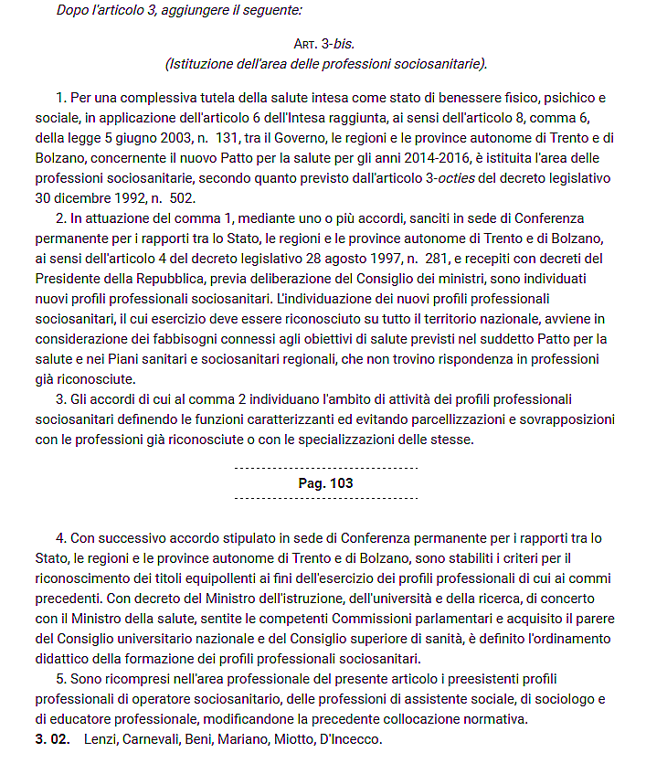 Pag. 102, 103 ddl del Ministero della salute. C. 3868