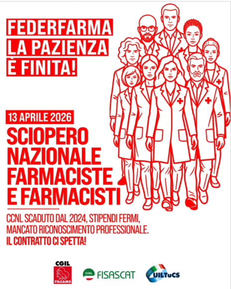 Nuova giornata di sciopero nazionale oggi, lunedì 13 aprile, per oltre 76mila addetti delle farmacie private. Farmaciste, farmacisti e collaboratori tornano a mobilitarsi per il rinnovo del Contratto collettivo nazionale, fermo dal 31 agosto 2024. A rilanciare la protesta sono Filcams Cgil, Fisascat Cisl e Uiltucs, che chiedono “risposte concrete su salario, professionalità e qualità del lavoro”.