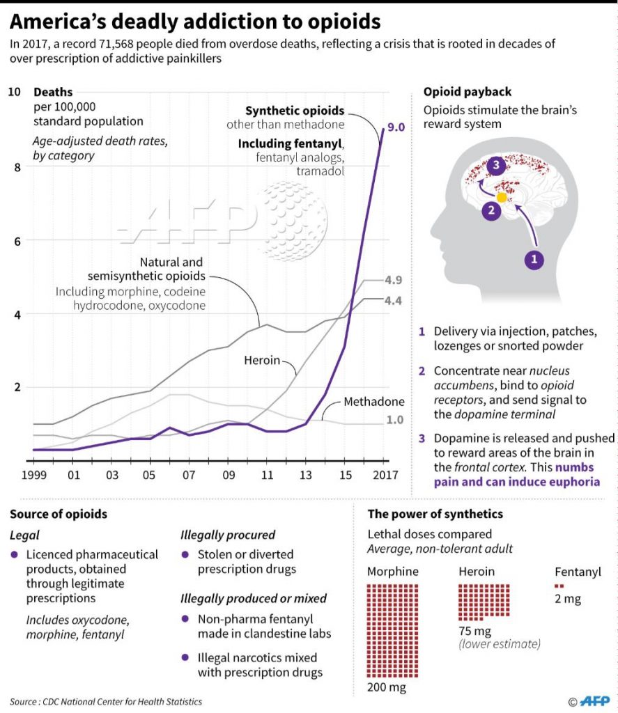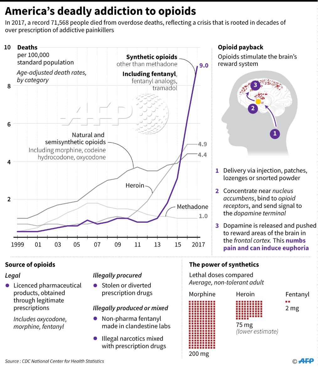 Decine di migliaia di morti sono stati causati da overdose da oppioidi negli Stati Uniti.